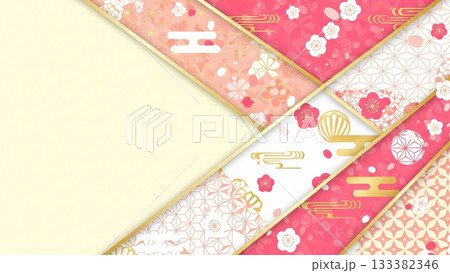 ピンクと金の華やかな和柄パーツを重ねた華麗な和風背景デザイン