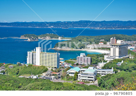 和歌山県の観光名所白浜のリゾート地の海湾のホテルの風景