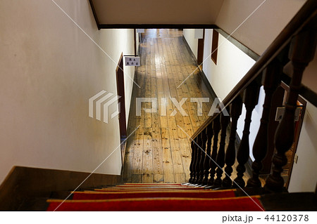 国宝:旧開智学校校舎:階段から1F廊下を見下ろす 松本市開智