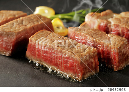 鉄板で焼く黒毛和牛ヒレステーキ(クローズアップ)