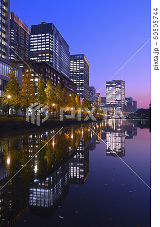 冬至の頃、夕暮れ時の丸の内高層ビル群(和田倉壕付近)