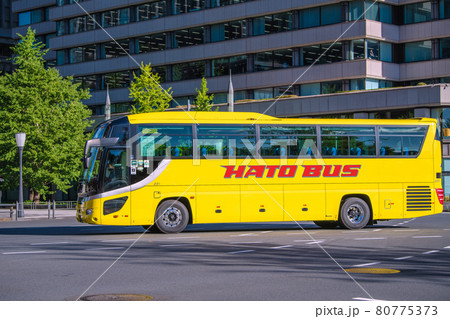 日本の東京都市景観 和田倉門前を走るバス=8月3日