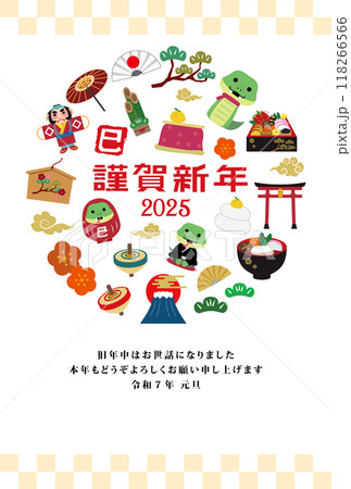 和モダンなしめ縄の2025年巳年の年賀状テンプレート(ベクターイラスト)