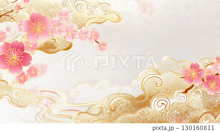 新春を彩る白背景の梅と金装飾の高感度デザイン