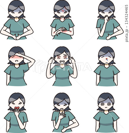 アレルギー症状が出た女性のイラスト カラー