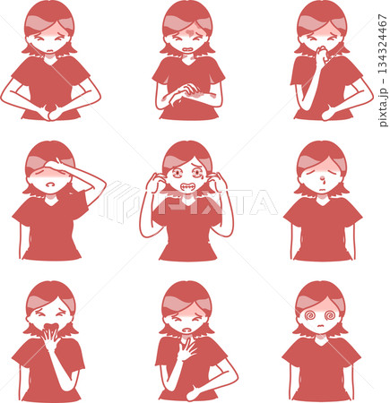 アレルギー症状が出た女性のイラスト 単色