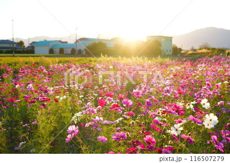 三重県員弁郡東員町のコスモス畑(咲き誇る)