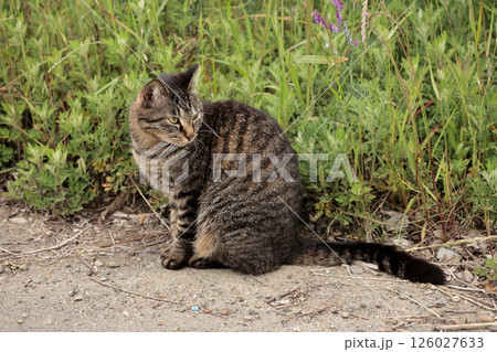 道端で遊ぶとら猫
