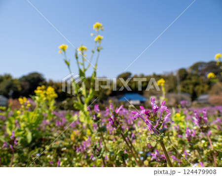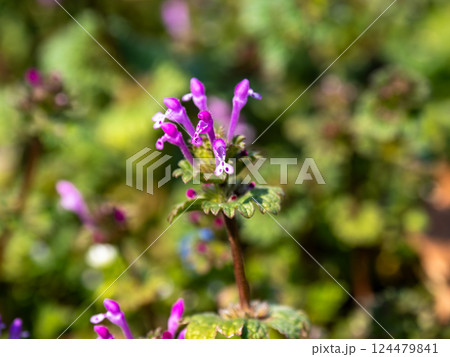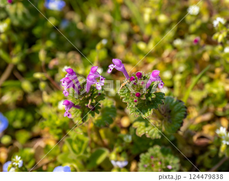 春の野原に咲くホトケノザの花
