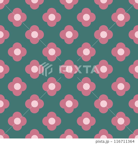 花柄のリピートパターン、ポップな柄のテキスタイルパターン、くすみピンクの花柄のシームレスパターン