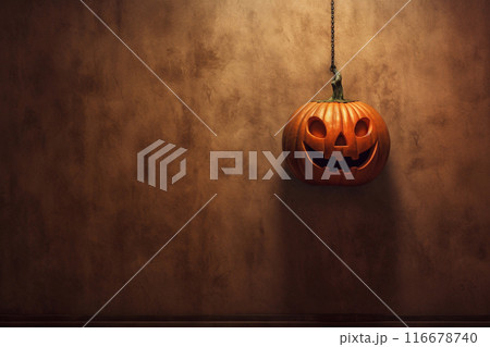 Big orange scary pumpkin on holiday Halloween, Ai generated