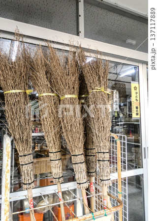 岩手県盛岡市鉈屋町の雑貨商の竹箒の販売 大きい樹木から出る落ち葉を掃くほうき