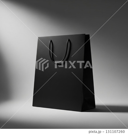 Black Shopping Bag with Rope Handles Under Soft Studio Lighting
