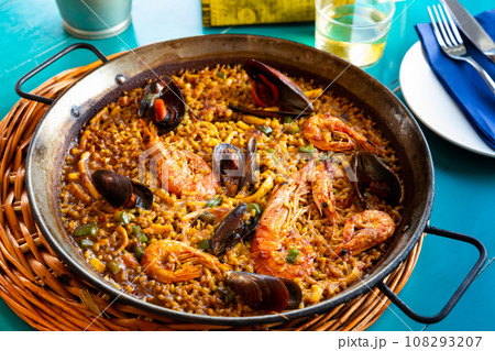 Paella with seafood - traditional Spanish dish
