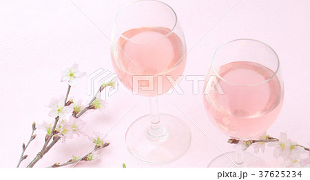 春のお祝いの桜とワイン