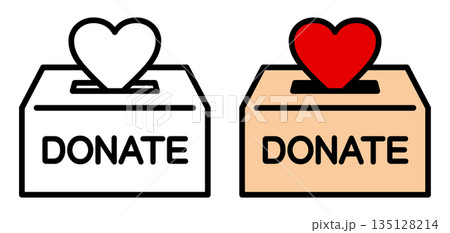 ハートと鳩の絵が描かれた募金箱を持った二人の子供 イラスト素材