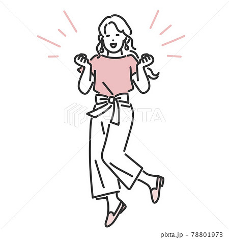 両手をあげて喜ぶ若い女性のシンプルなベクターイラスト素材