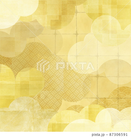 金・金箔に雲のシルエット 和モダンな背景素材【1:1】