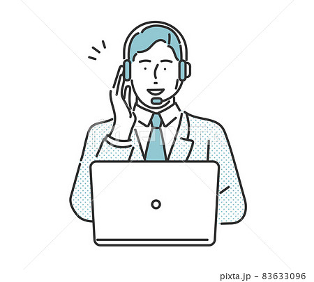 インカムでお客様の対応をするコールセンターのオペレーターの男性のイメージイラスト素材
