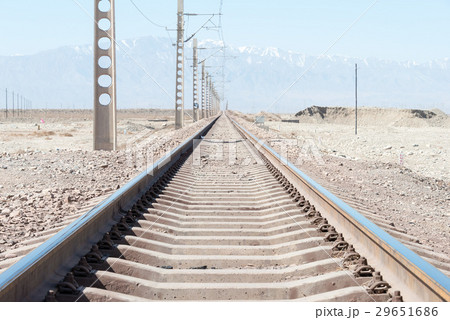 シルクロード河西回廊の線路 中国・甘粛省嘉峪関市