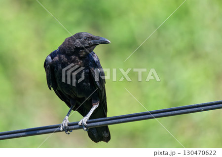 電線に留まるハシボソガラス