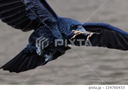 木切れをくわえるカラス(ハシボソガラス)