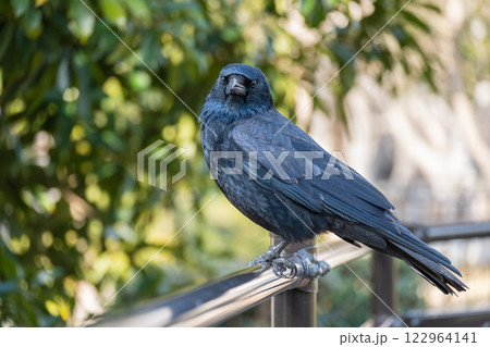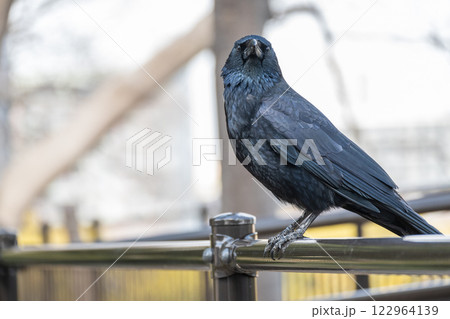 柵の上に止まるカラス(ハシボソガラス) 滋賀県大津市