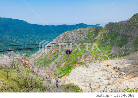 大涌谷を眼下に眺める箱根ロープウェイ ※一部ソフトフォーカス