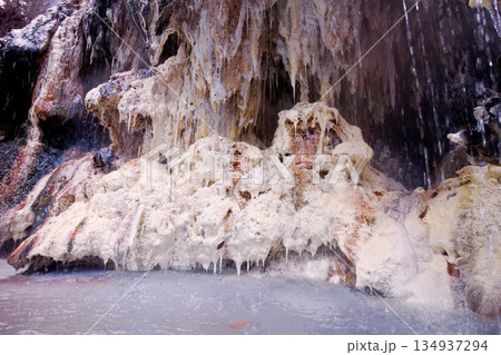 日光市 湯沢噴泉塔 源泉の析出物