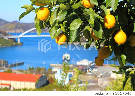 瀬戸内レモン (国産レモン栽培、葉、レモン、キズ修正)-広島県尾道市瀬戸田