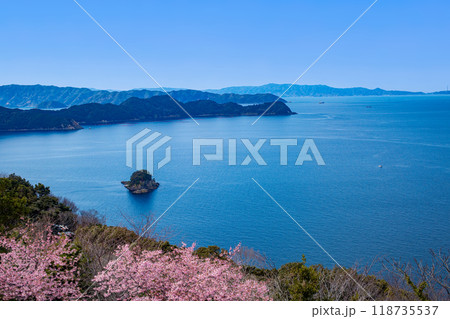 【大分県】晴天の四浦半島の四浦展望台の河津桜(津久見)