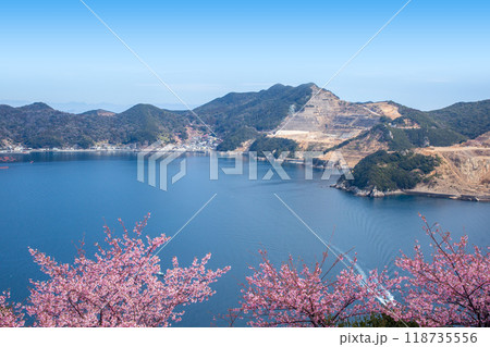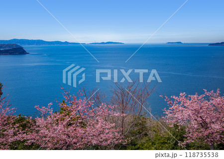 【大分県】晴天の四浦半島の四浦展望台の河津桜(津久見) 【大分県】晴天の四浦半島の四浦展望台の河津桜