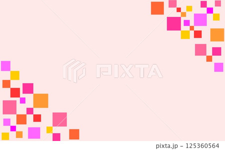 幾何学模様 フレーム 白背景 ボーダー 四角形 オレンジ色 ピンク