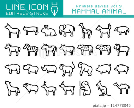 ラインアイコン 動物シリーズvol.9 哺乳類動物 横向き全身