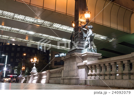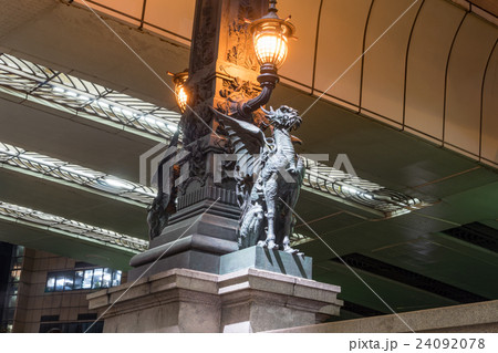 日本橋中央の燈柱と麒麟像