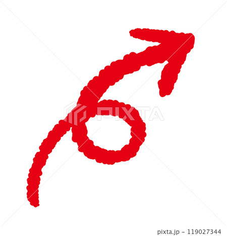 手書き赤い矢印 アロー 上昇するアップする