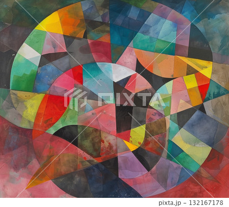 Abstract colorful watercolor painting with intersecting shapes