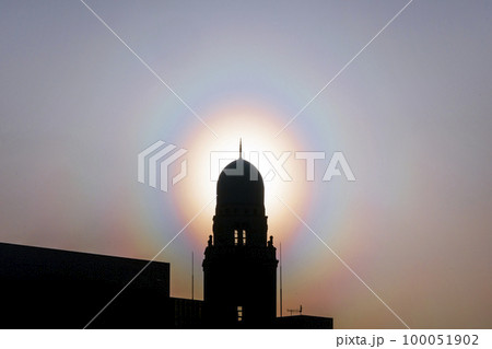 横浜税関本関庁舎(クイーンの塔)に架かる花粉光環
