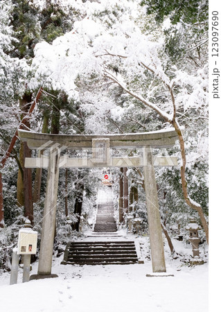 雪化粧の宇倍神社の鳥居 鳥取県鳥取市国府町宮下