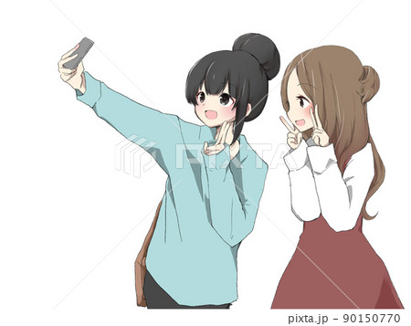 若い女性のヘアスタイルのイラスト集合 おしゃれな髪型のファッション系ベクターイラストのセット 白黒