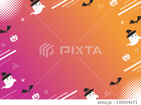 ハロウィンのお化けと幾何学模様のフレームのイラスト_グラデーション