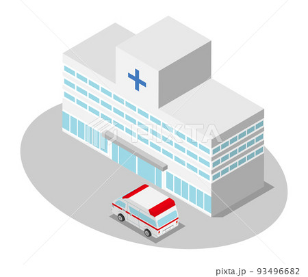 建物セット アイソメトリック図 - コンビニ 学校 銀行 病院