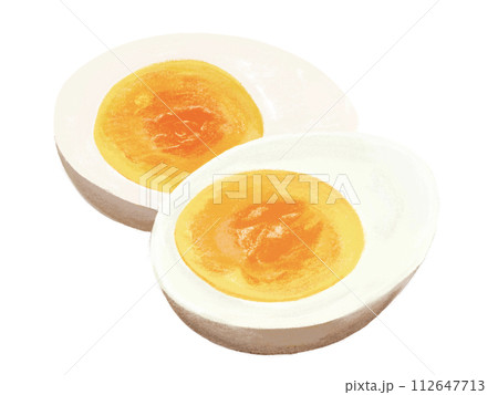 固茹でのゆで卵のセット 卵料理の手描き水彩イラスト素材