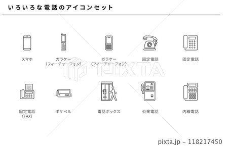 いろいろな電話のシンプルアイコンセット素材、ベクター