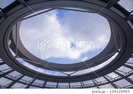 【ドイツ】首都ベルリンの国会議事堂上部の円形の天窓から望む曇り空
