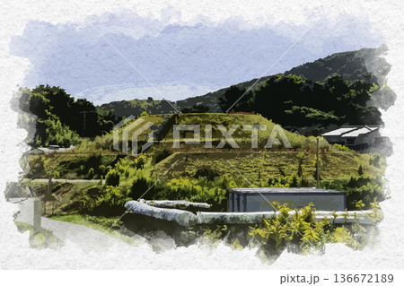 水彩画風 千足古墳 造山第5号墳 岡山県岡山市