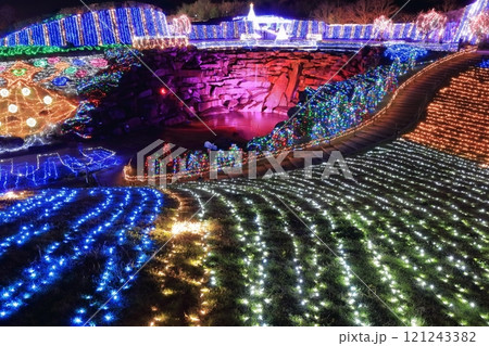 国営讃岐まんのう公園の竜頭の里のイルミネーション。(冬季)