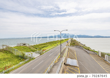 長崎県諫早市 諫早湾干拓堤防道路(雲仙太良シーライン展望所から雲仙方向)