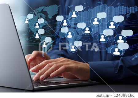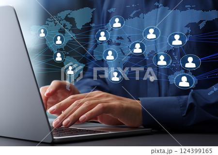 グローバルな人材ネットワークと国境を越えたコラボレーション。チームとコミュニケーションをとるノートパ