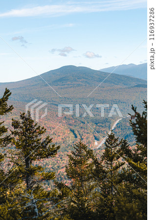 Views overlooking White Mountain National Forest during the beginning of Fall.